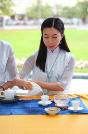 Кина је позната по својим чајевима и као што је код нас уобичајено пити кафу у одређено доба дана, тако је у Кини уобичајено пити чај. Културу чаја, или чајну церемонију, представиле су нашим суграђанима гошће из Конфуцијевог института из Новог Сада.